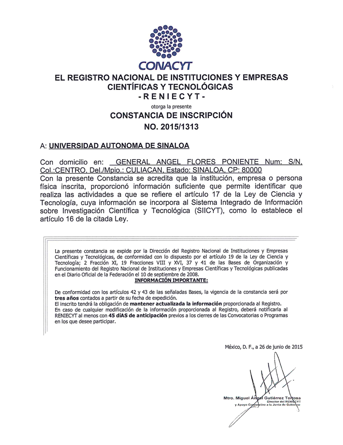 Registros Oficiales Posgrado FCA UAS RENIECyTRegistro DGPConsejo Universitario UASRENIECyT Registro DGP Consejo Universitario UAS ConsejoUniversitarioUAS